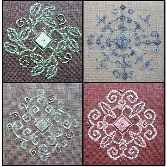 Garden Trellis Biscornu ribbon embroidery pattern