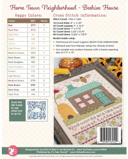 Home Town Neighborhood #2 - Beehive House counted cross stitch chart