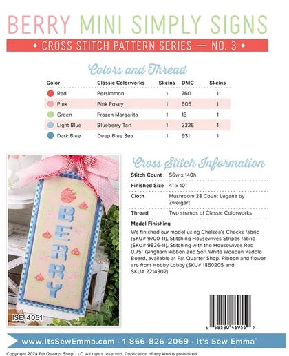 Simply Signs Mini #3 - Berry counted cross stitch chart